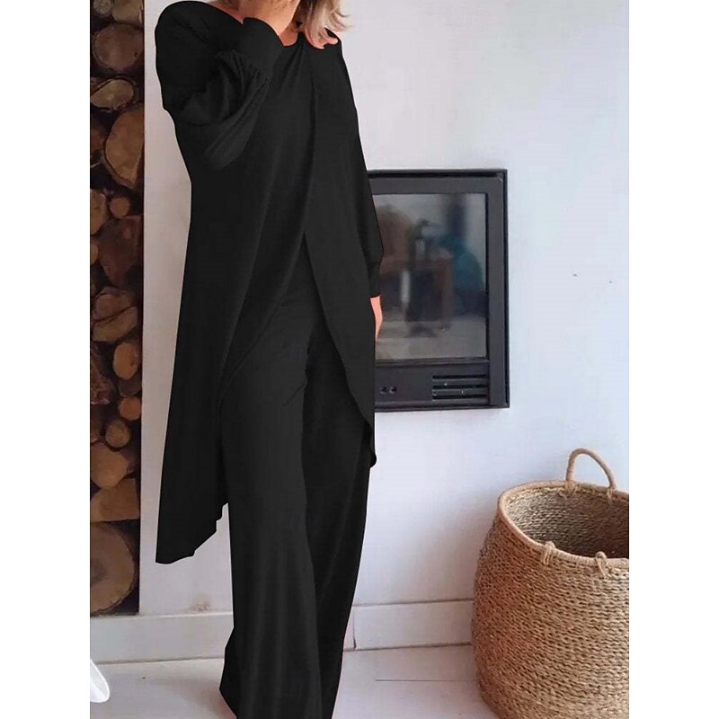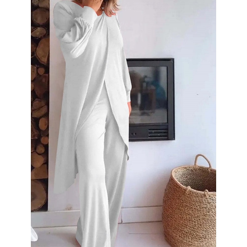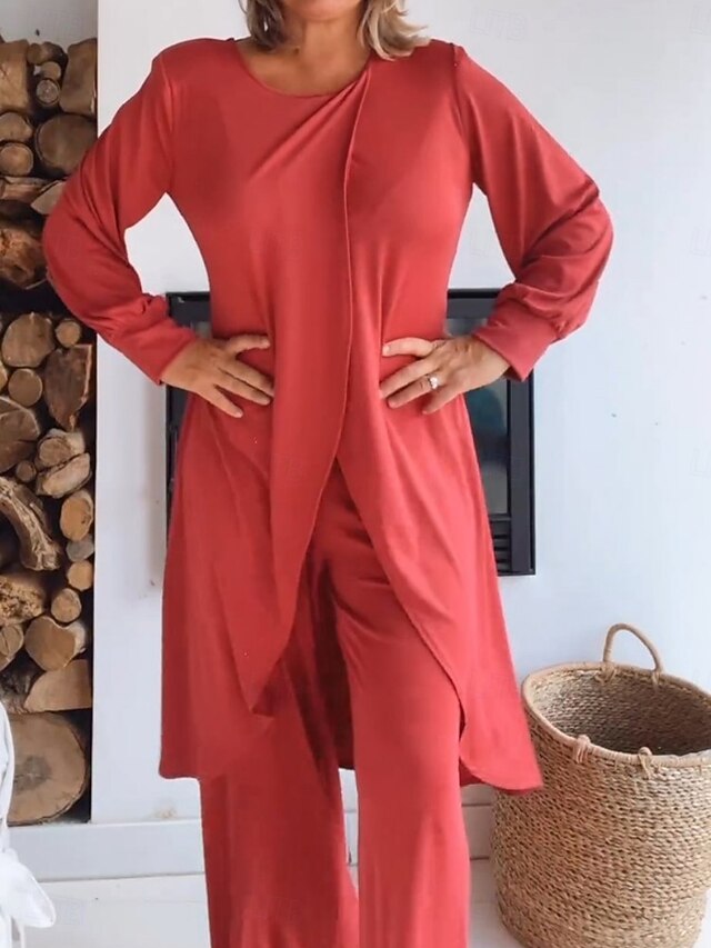 More information about Women's Fashion Streetwear Daily Pants Sets Long Sleeve Crew Neck Solid Color Ruched Casual Daily Black White Red Spring Regular Fit