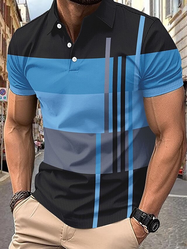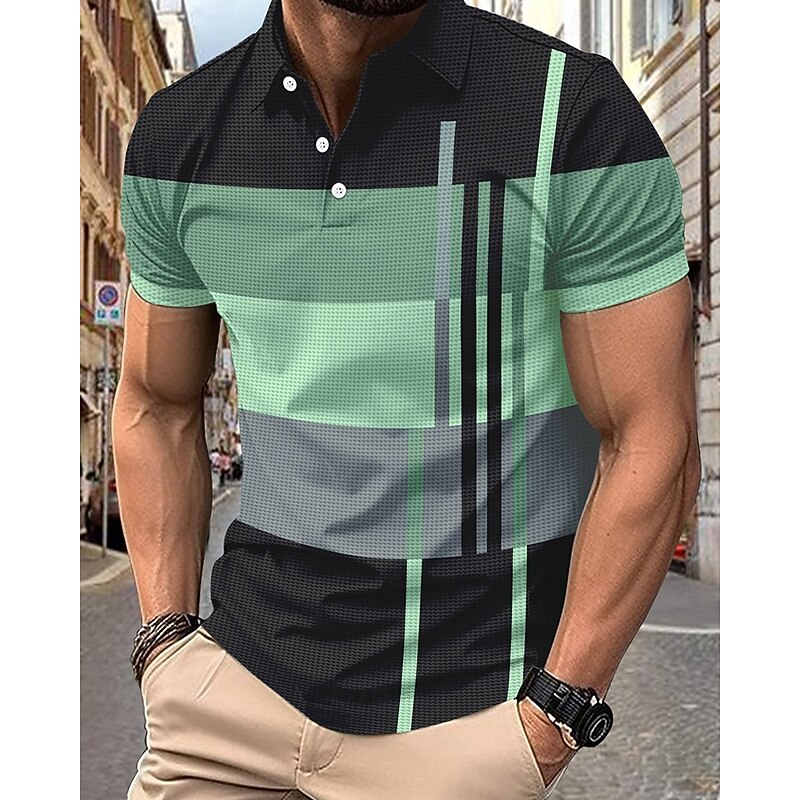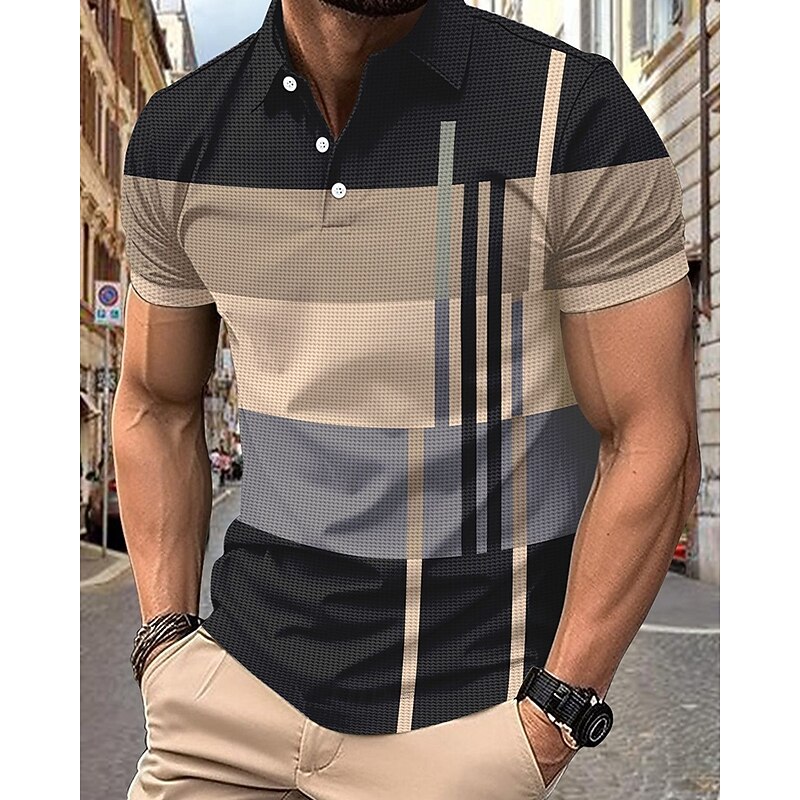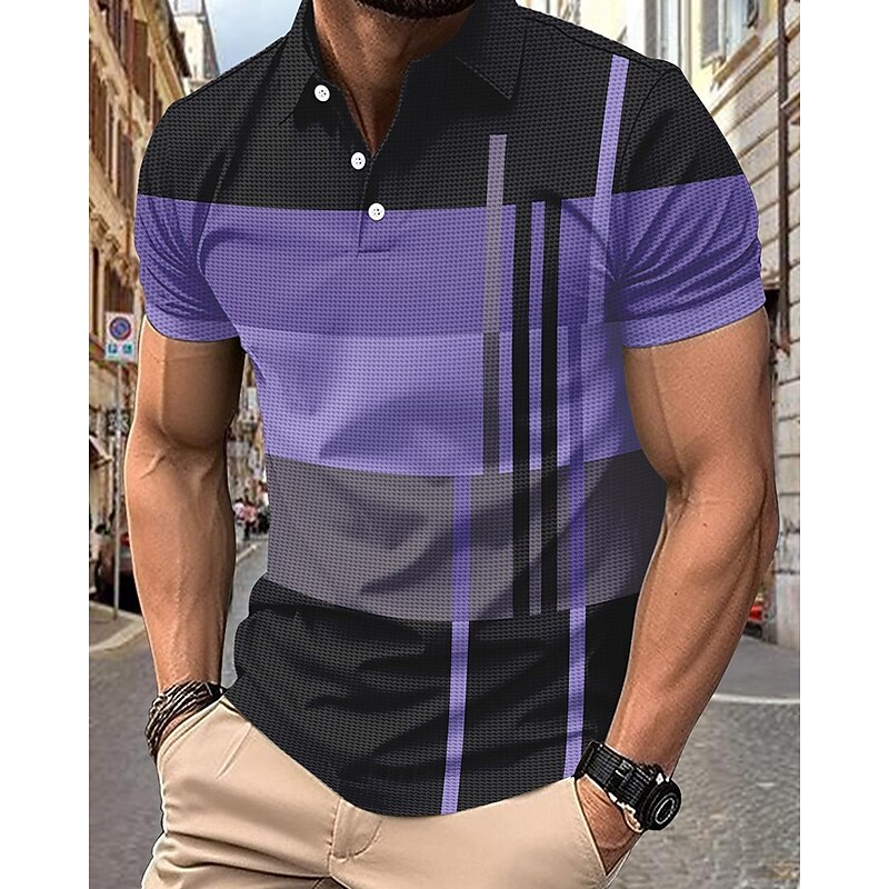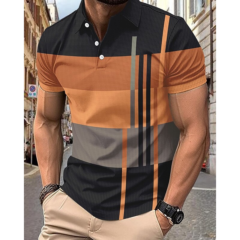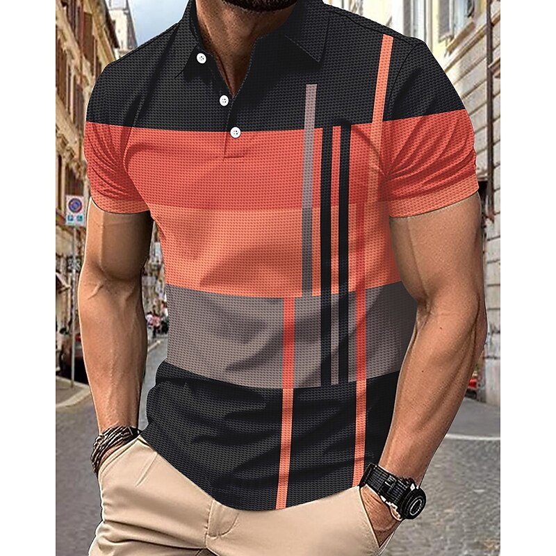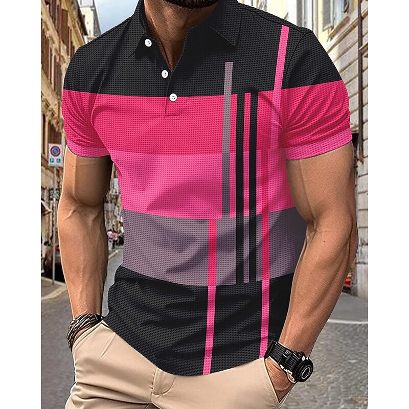 More information about Men's Golf Shirt Golf Polos Shirts Work Casual Lapel Short Sleeve Basic Modern Stripes Patchwork Buttons Summer Regular Fit Pink+Orange Dark Pink Blue Purple Orange Green Golf Shirt