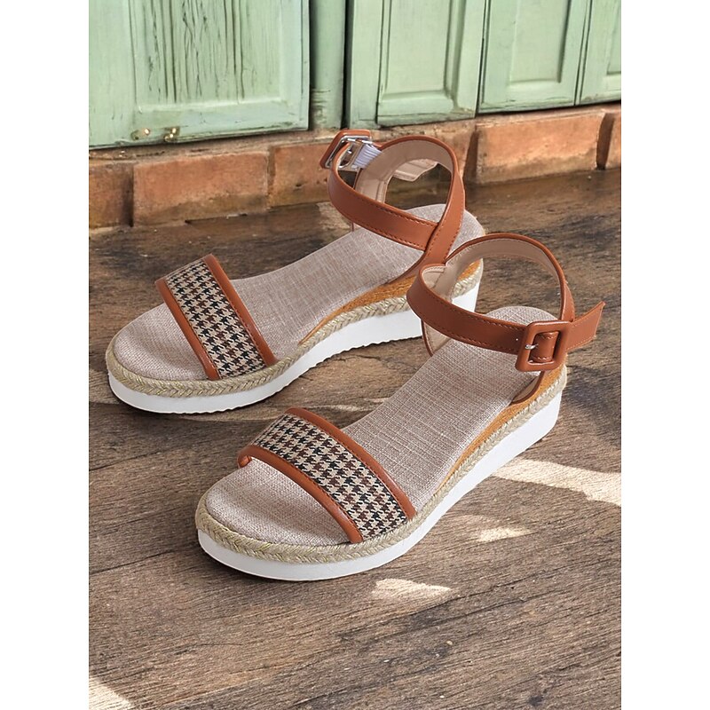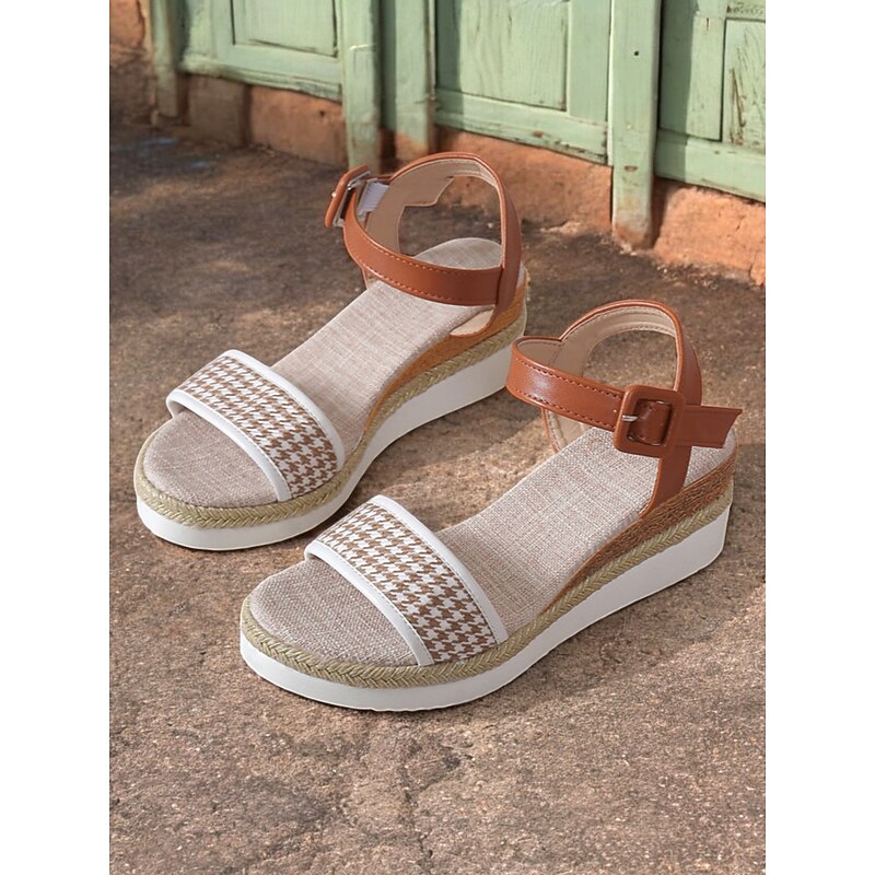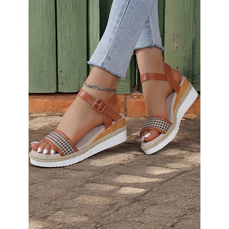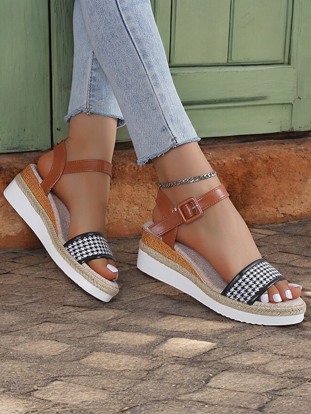 HOT ! Women's Houndstooth Espadrille Wedge Sandals with Ankle Strap – Casual Summer Platform Sandals for Vacation and Daily Wear