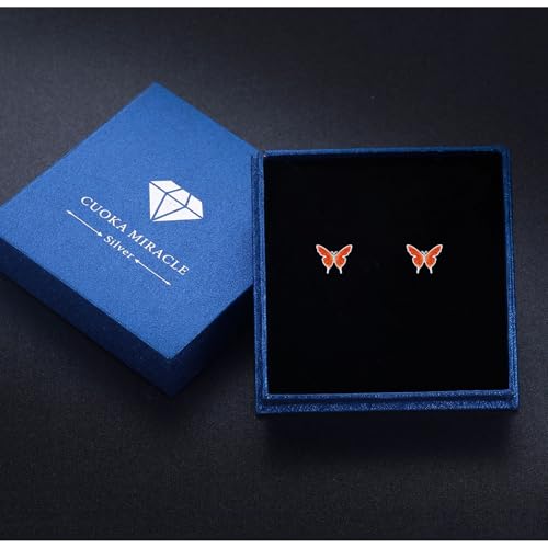 HOT ! CUOKA MIRACLE Butterfly Earring Opal Butterfly Studs Earrings 925 Sterling Silver Hypoallergenic Butterfly Jewelry White/Black/Yellow/Orange/Purple/Blue/Green Stud Earrings for Sensitive Ears