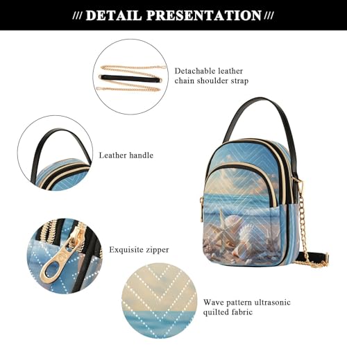 Quilted Crossbody Bags for Women,Seashell Starfish on Beach Summer Women's Crossbody Handbags Small Travel Purses Phone Bag 4