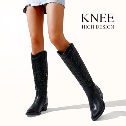 Vepose Womens Tall Cowboy Boots Knee High Cowgirl Low Heel Comfy Boots for Ladies 1
