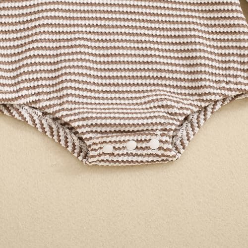 • Adorable Unisex Design: Gender Neutral baby romper in a classic striped pattern is perfect for both infant baby boys and girls, baby girl bubble romper, baby boy long sleeve bodysuit, baby knit outfit girl oversized romper, making it an easy and stylish choice for your newborn baby's wardrobe.