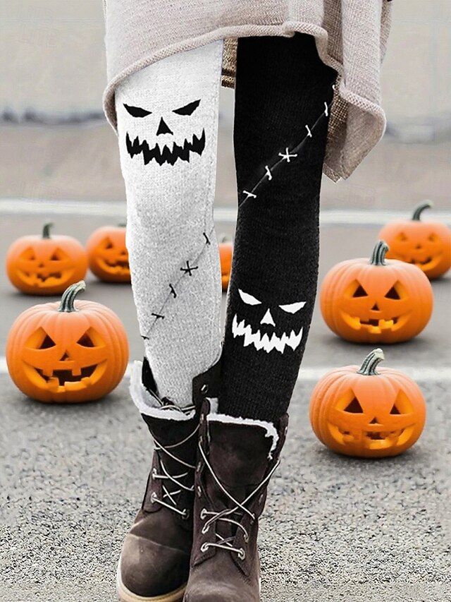 HOT ! Women's Pants Trousers Leggings Cozy Leggings Streetwear Casual Full Length High WaistPantsHalloween Pumpkin Elastic Waist Print Breathability Comfortable Stretchy Vacation Street Daily Wear White