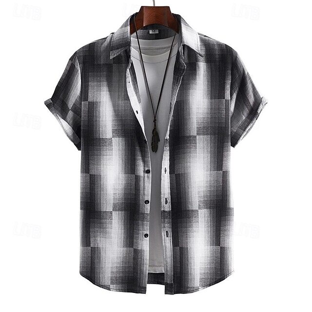 Highlights [Fabric] : Crafted from breathable polyester, this men's shirt ensures comfort during warm summer days or as a layering piece in cooler weather. The lightweight fabric allows for ease of movement and keeps you feeling fresh. [Fit] : Designed with a regular fit, this shirt provides both style and comfort. It allows for relaxed wear without compromising on a modern and tailored look. [Design Highlights] : Featuring a classic black-and-white plaid pattern, this shirt brings a contemporary twist to traditional designs. The turndown collar and button-up front add a touch of sophistication, while the casual rolled sleeves enhance its laid-back charm. It's perfect for pairing with a simple white T-shirt for a stylish outfit. [Occasions] : Ideal for a variety of occasions, from casual daily wear to vacations and streetwear. Whether you're headed for a beach getaway or a casual day out, this versatile shirt fits right in, offering a fashionable yet comfortable option. [Size Range] : Available in a range of sizes from S to 2XL, catering to various body types and ensuring the perfect fit for a diverse audience.