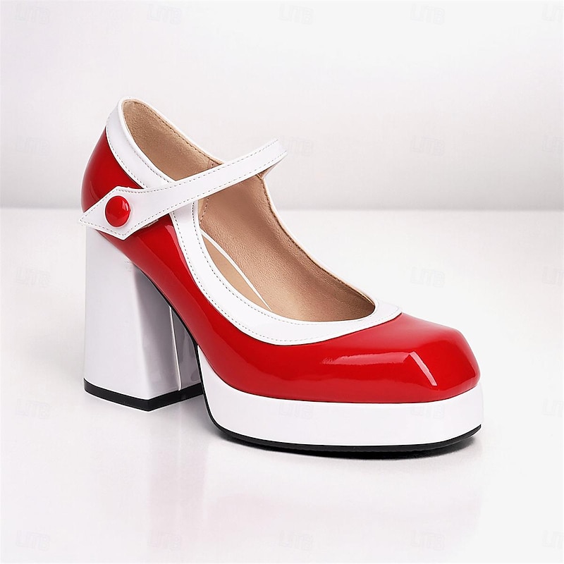 : Crafted from high-quality PU with synthetic leather lining, these Mary Jane platform pumps present a glossy patent leather finish for an elegant and modern look. The shoes feature a durable rubber outsole, ensuring long-lasting wear and comfortable traction.