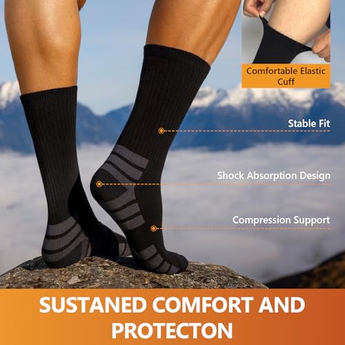 • Anti-Blister Cushioning: These crew length socks feature targeted cushioning to help prevent blisters. Arch support improves stability and reduces foot fatigue. Designed for hiking, trekking, or walking.