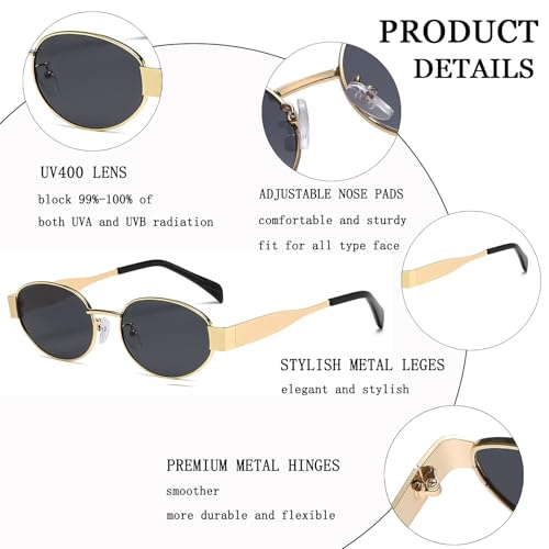 • Retro Oval Design - These gold oval sunglasses for women are continue the 90s classic design, looks more fashionable and retro. Metal Frame makes the trendy gold glasses are more solid and refined. And closely with the latest fashion trending, one of the most fashion accessories