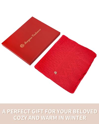 Scarf 30% Mongolian Cashmere 70% Australian Merino Wool Large Size Ultra Soft Warm Scarves Red with Gift Box 1
