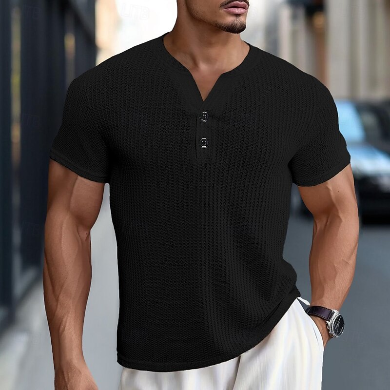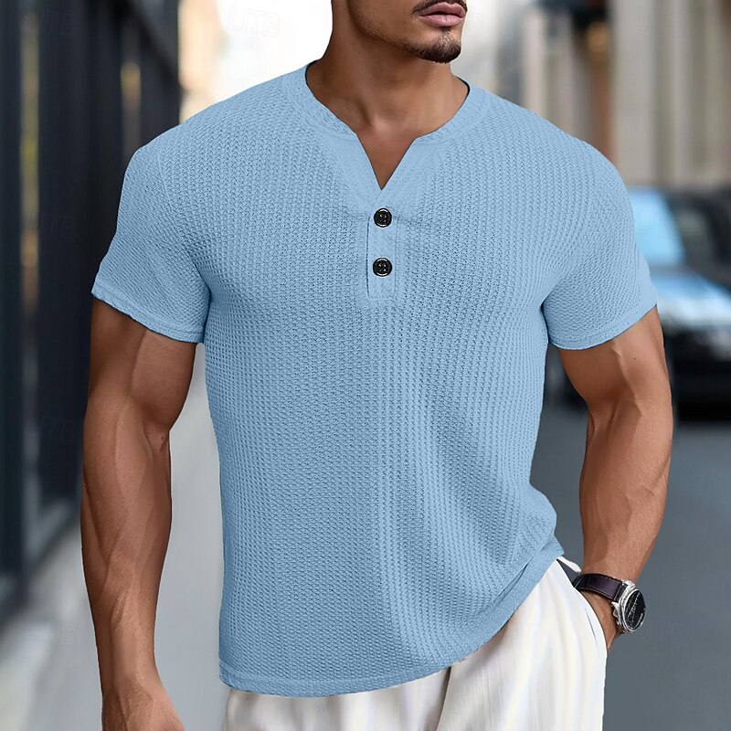 More information about Men's Waffle Henley Shirt Tee Short Sleeve Solid Color Plain Knitwear Buttons Henley Outdoor Casual Daily Summer Spring & Fall Black White Blue Henley T-Shirt