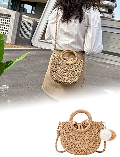 • ★Detachable woven shoulder strap: let you choose to carry it by hand, cross-body or shoulder, giving you a variety of choices, suitable for various occasions, the woven straw tote bag adopts a half-moon structure shape, round handle and fur ball, it is for you The perfect accessory to stand out anywhere.