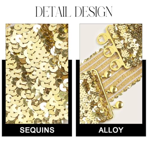Asooll Sparkly Gold Sequin Waist Blet Wide Elastic Waistband Party Club Dress Belt for Women 5