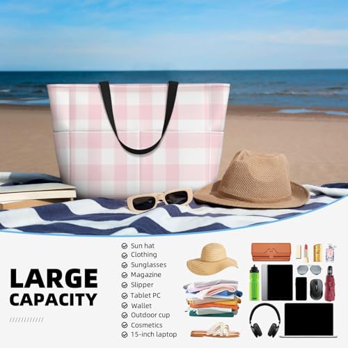 Pink Christmas Print Large Beach Tote Bag Women Waterproof Sandproof Zipper Beach Tote Bag For Pool Gym Grocery Travel With Wet 5