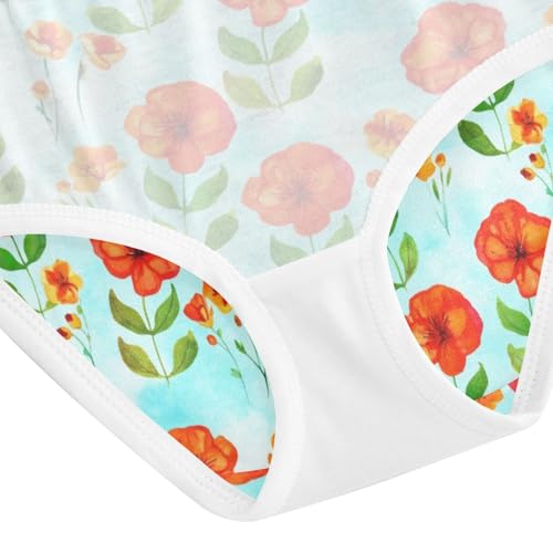 Joisal Watercolor Red Flowers Blue Little Girl Panties Toddler Girls Underwear Cotton Bright Kids Undies Briefs 2t 5