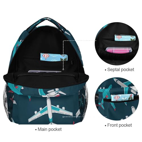 Airplanes Pattern Backpack for Boys Girls, Kids Bookbag Laptop Tablet Travel School Bag with Name Tag 7