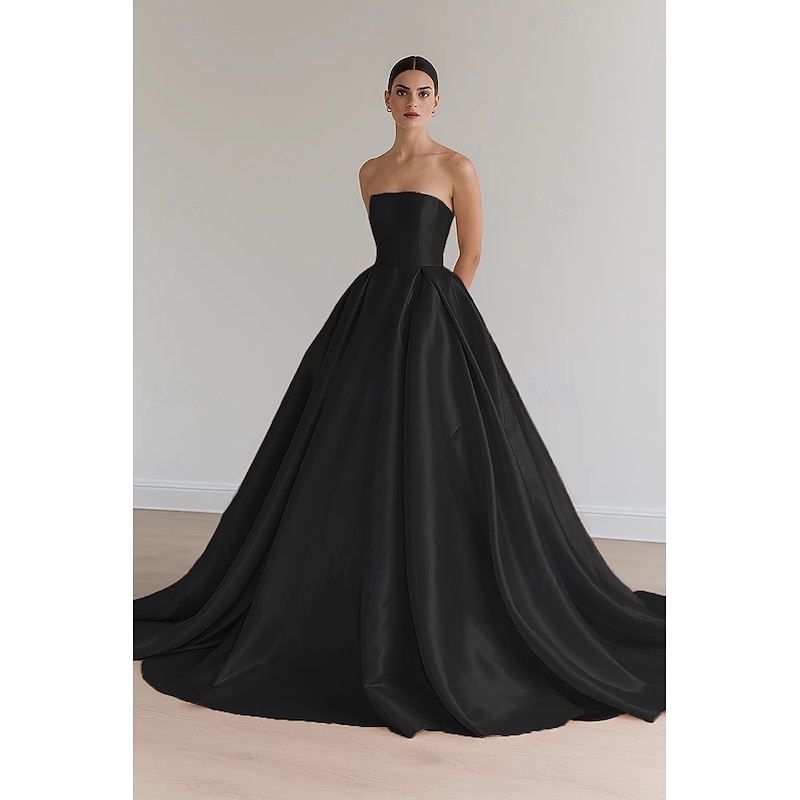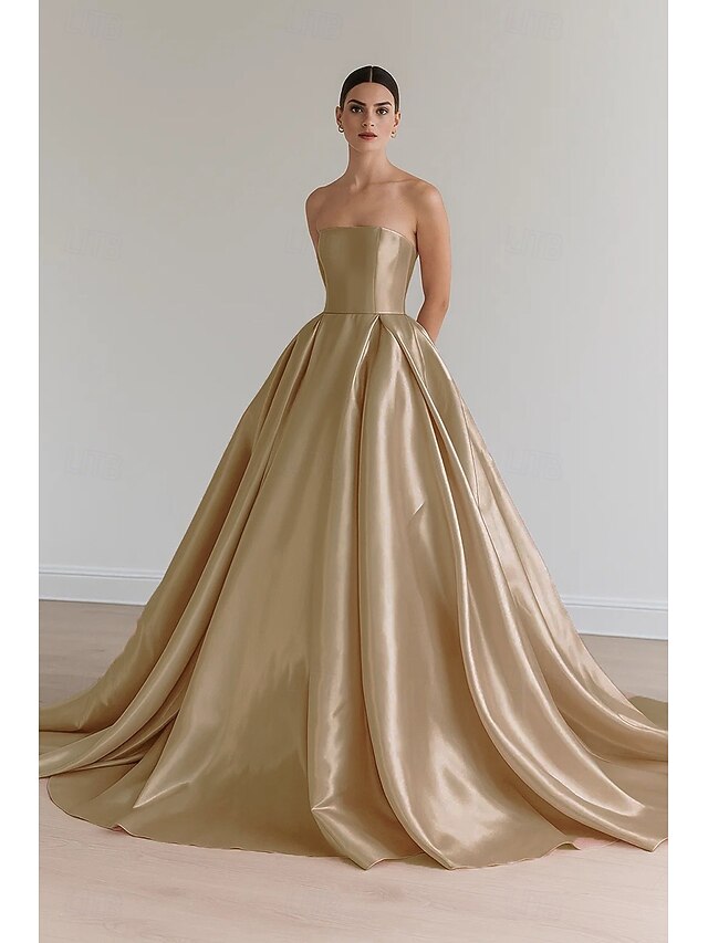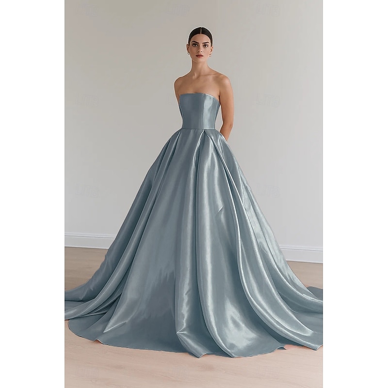 More information about Stretch Satin Ball Gown Evening Gown Elegant Dress Formal Wedding Sweep / Brush Train Sleeveless Strapless with Pleats and Lace Up 2025