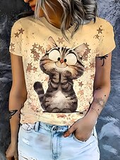 HOT ! Women's T Shirt Graphic Animal Vintage Stylish Casual Short Sleeve Crew Neck Regular Tops Daily Weekend Print Yellow Blue Summer