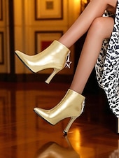 Women's Gold Ankle Boots with Faux Fur Lining Stiletto Heel and Star Charm Pointed Toe Booties for Nightlife and Christmas Parties 1