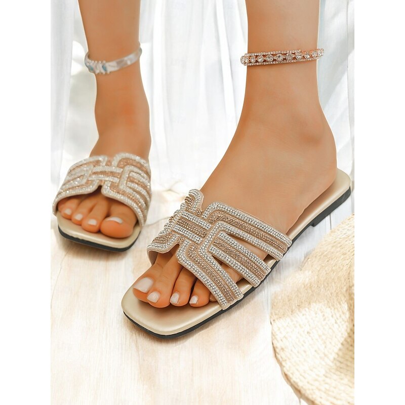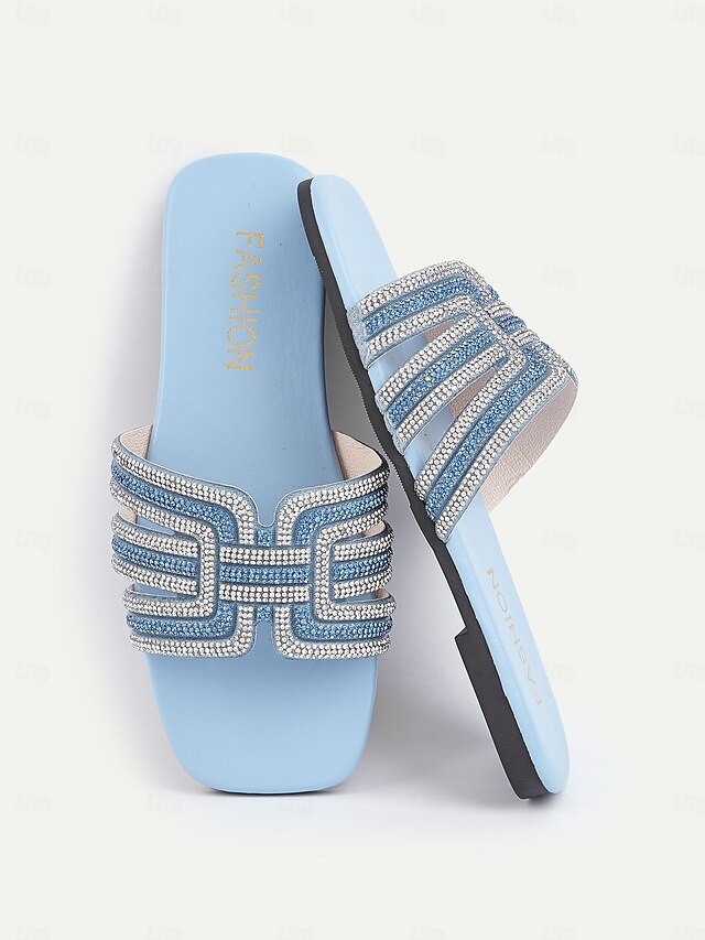 HOT ! Women's Light Blue Rhinestone Embellished Slide Sandals – Elegant and Comfortable Slip-On Shoes for Summer, Beach, and Casual Outings