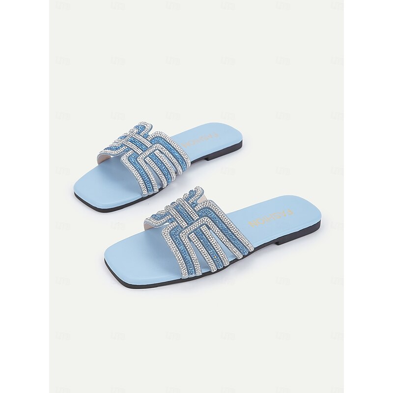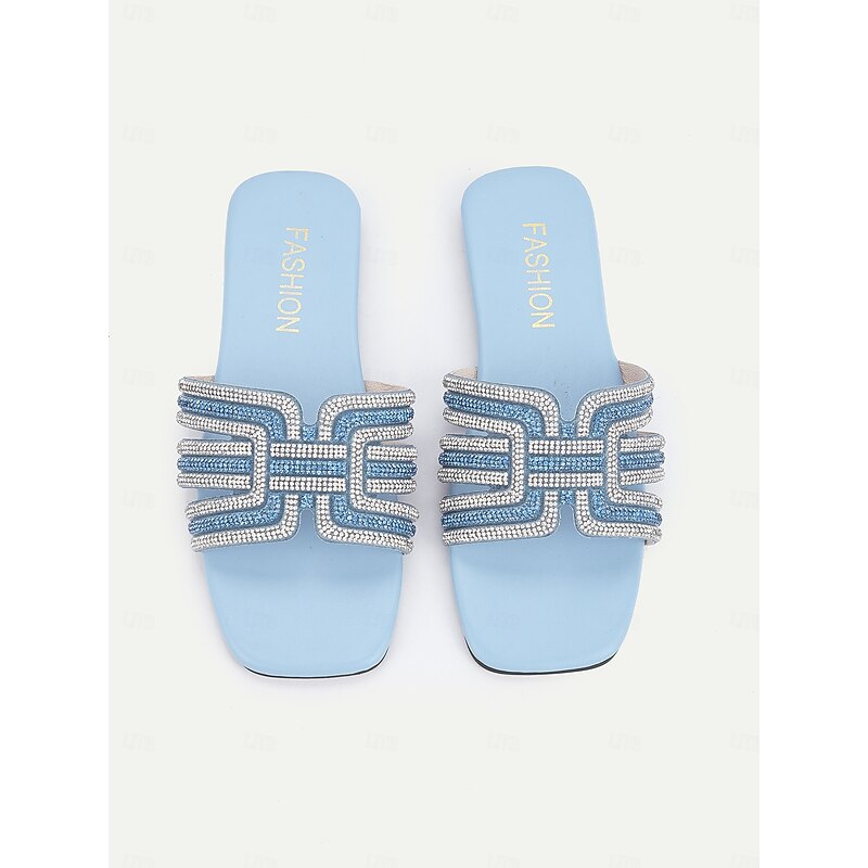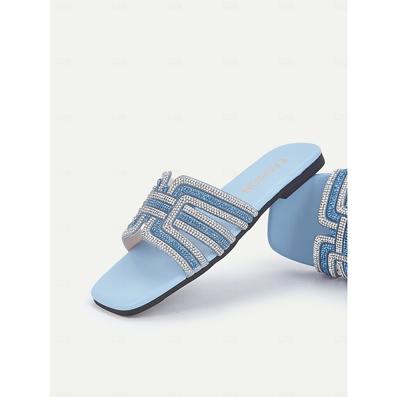 Women's Light Blue Rhinestone Embellished Slide Sandals – Elegant and Comfortable Slip-On Shoes for Summer, Beach, and Casual Outings 1