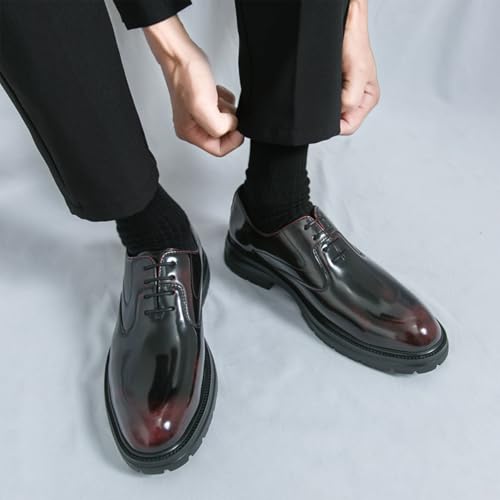 Men's Leather Dress Platform Oxford Shoes Classic Round Toe Lace Up Comfort Non Slip Casual Derby Shoes for Business Office Wedding 7