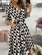 Women's Midi Dress Casual Dress A Line Dress Stylish Casual Vacation Daily Regular Fit Graphic Geometric 3/4 Length Sleeve V Neck Black White Blue Green Summer 9