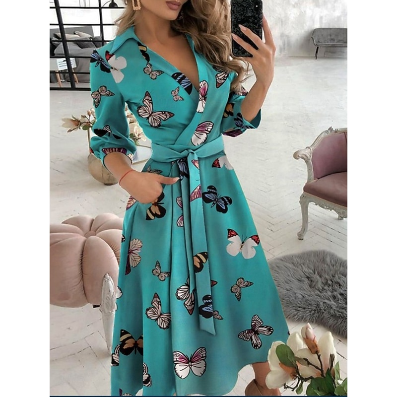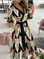 More information about Women's Midi Dress Casual Dress A Line Dress Stylish Casual Vacation Daily Regular Fit Graphic Geometric 3/4 Length Sleeve V Neck Black White Blue Green Summer