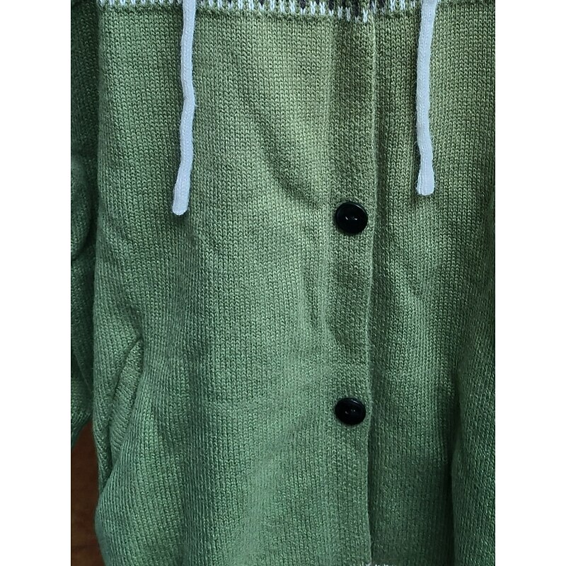 More information about Women's Cardigan Vintage Daily Vintage Style Geometric Ribbed Hooded Knitted Print Front Pocket Long Sleeve Regular Tops Knit Outdoor Daily Green Fall Winter