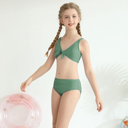 Patgoal Girls Swimsuits Teen Girls Two Piece Bikini Set Kids Knot Front V Neck Bathing Suit Girls' Swimwear Beachwear 6
