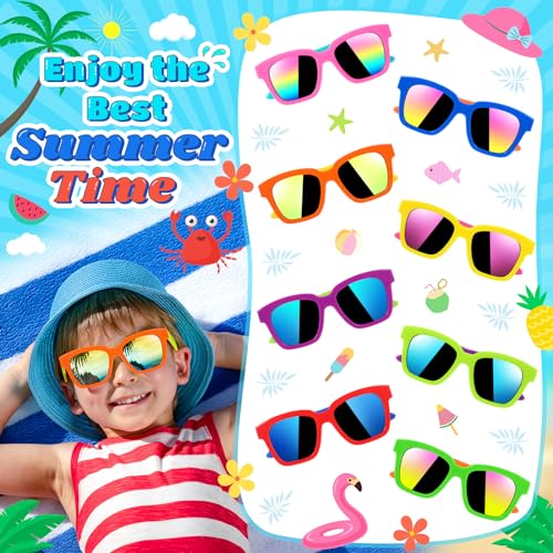 HOT ! Luucio 24 Pack Kids Sunglasses Bulk, Kids Sunglasses Party Favor with UV400 Protection, Party Favors for Kids Goodie Bags, Summer Beach Party Favors, Pool Party Favors for Kids Age 3-8