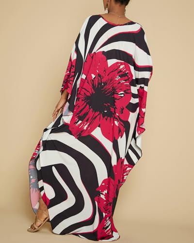 • Design: Floral Print/Flowing Kaftan/Deep V Neck/Batwing Sleeves/Side Slits/Weave/Plus Size Swimsuit for Women/Caftans for Women Loungewear/Mumu Dresses for Women