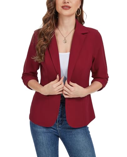 More information about Women's Casual Work Office Blazer Open Front Business 3/4 Sleeve Button Blazer Lightweight Suit Jacket