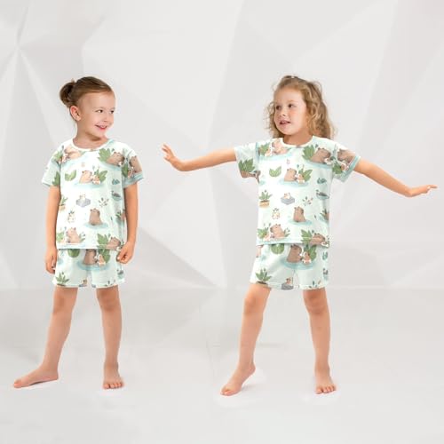 Pajama Short Sets Cute Hamsters Swimming in Ponds Soft Cotton Summer Sleepwear 2 Piece PJS Size 5-14T 5