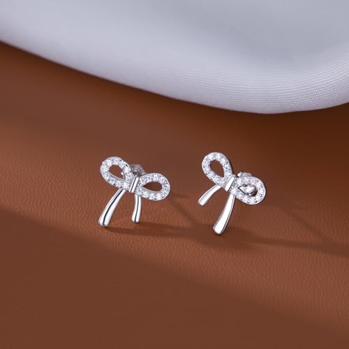 Reffeer Solid 925 Sterling Silver CZ Bow Stud Earrings for Women Teens Ribbon Stud Earrings Bowknot 4