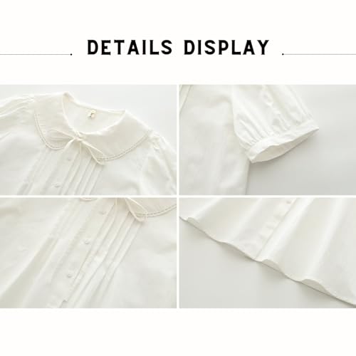 • 【Features】: Sweet peter pan collar with delicate lace, adds a touch of playfulness and cuteness, button down closure, pleated details front, solid color, adjustable tie front, Japanese style top, puff short sleeve, casual and loose fit, cute lolita blouse shirt, soft babydoll top