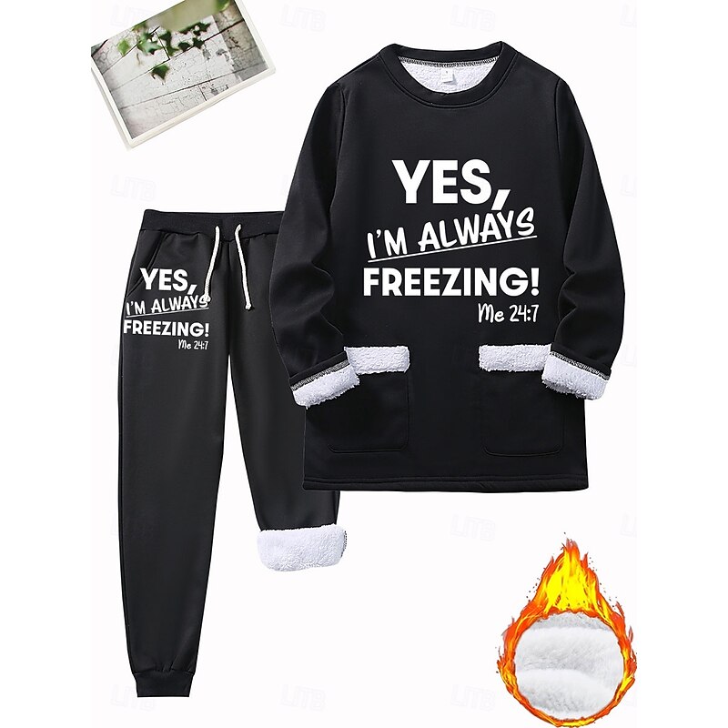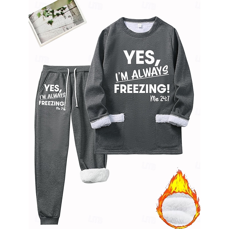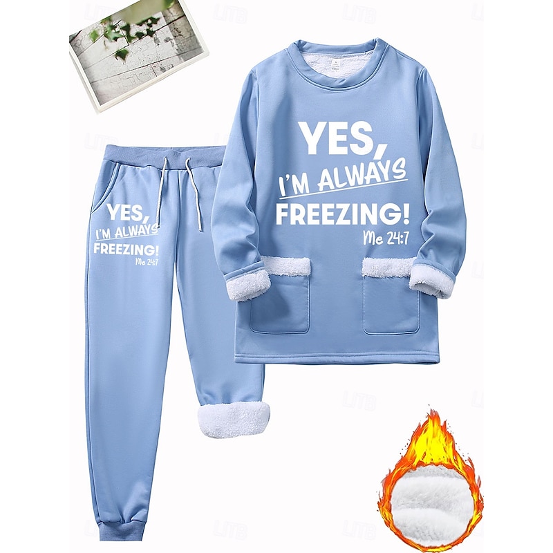 More information about Women's Warm Daily Two Piece Sets Tracksuit Pants Sets Long Sleeve Crew Neck Graphic Letter Drawstring Print Casual Daily Black Dark Pink Blue Fall Regular Fit