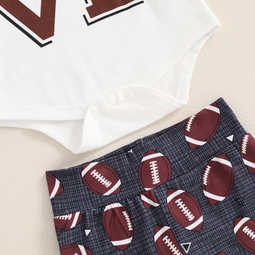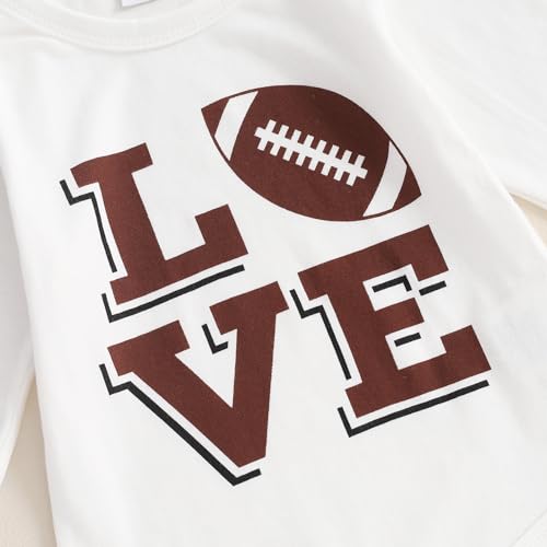 BULINGNA Infant Baby Girl Football Season Outfit Set Love Bodysuit Romper Football Flared Pants with Headband Fall Clothes 4