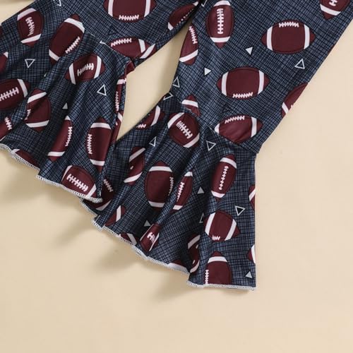 BULINGNA Infant Baby Girl Football Season Outfit Set Love Bodysuit Romper Football Flared Pants with Headband Fall Clothes 7