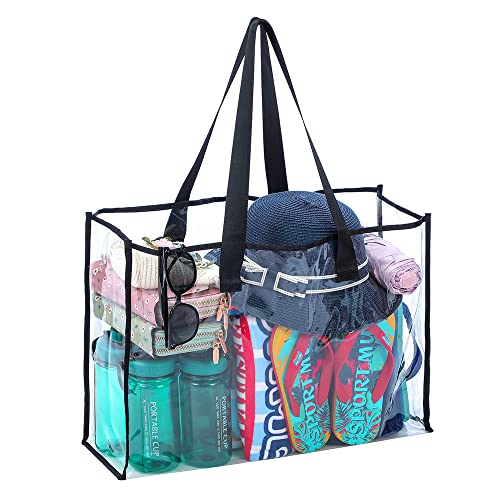 HOT ! Clear Tote Bag, Larger Transparent Handbag for Beach, Gym, Sports Game, Concert, Security, Work, Shopping, Adult