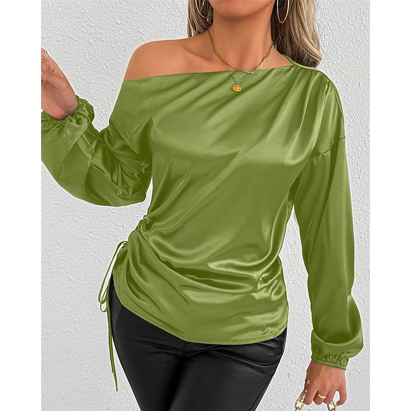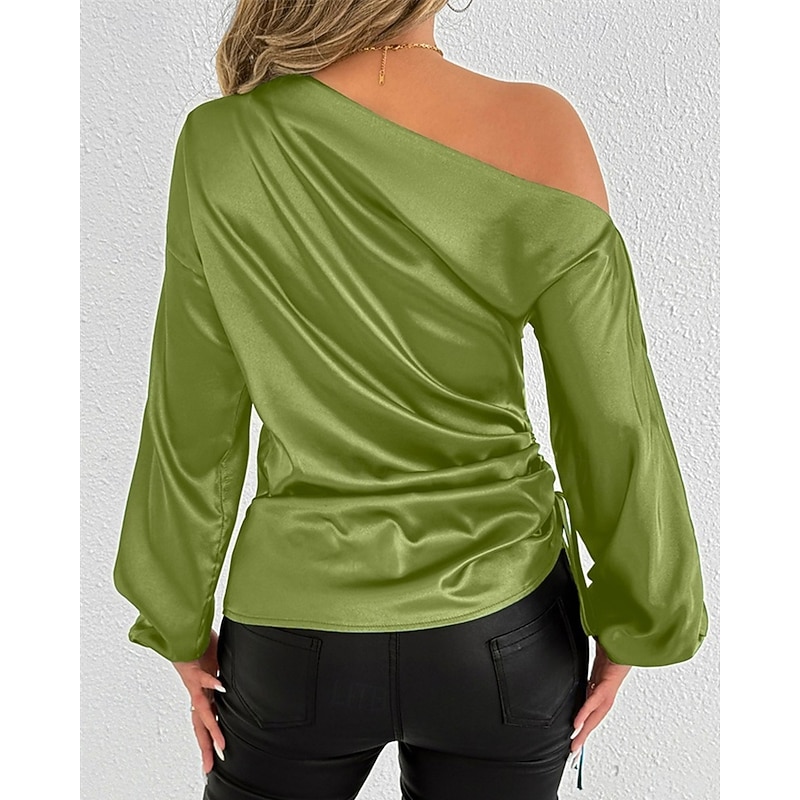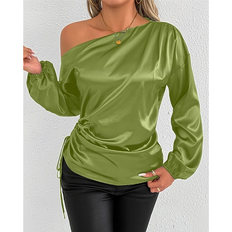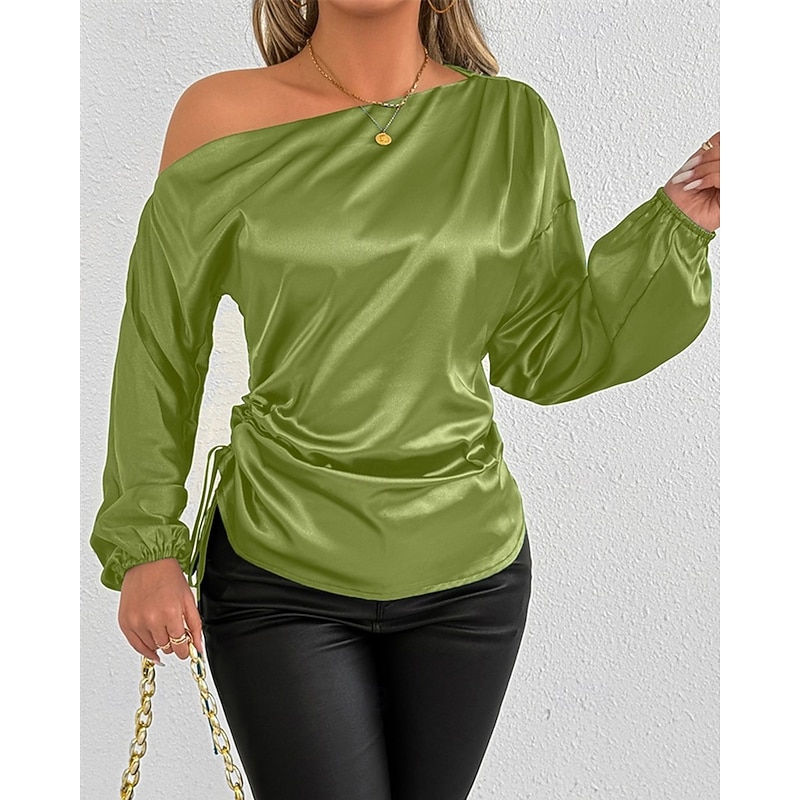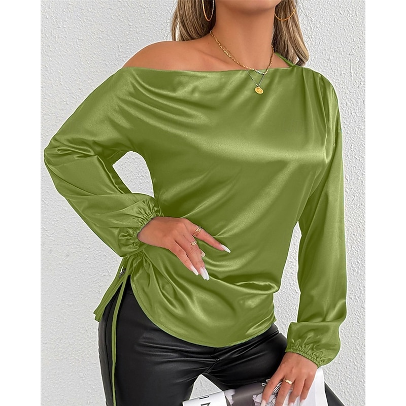 Why Choose Women's Shirt Elegant Dressy Satin Plain sophisticated Casual Long Sleeve Cold Shoulder Regular Tops Daily Going out Asymmetric Black Green Spring Fall?