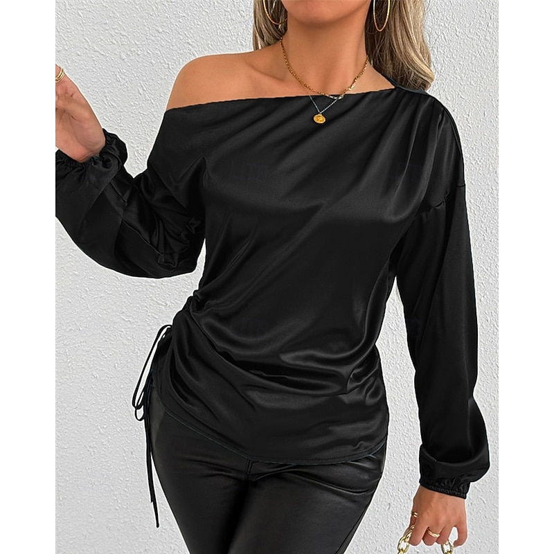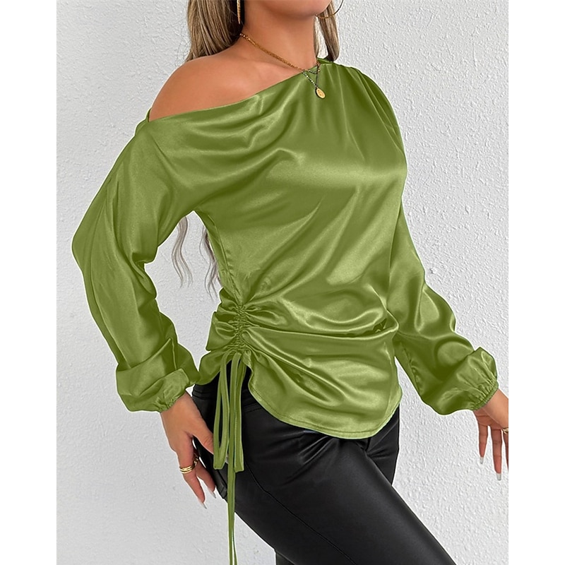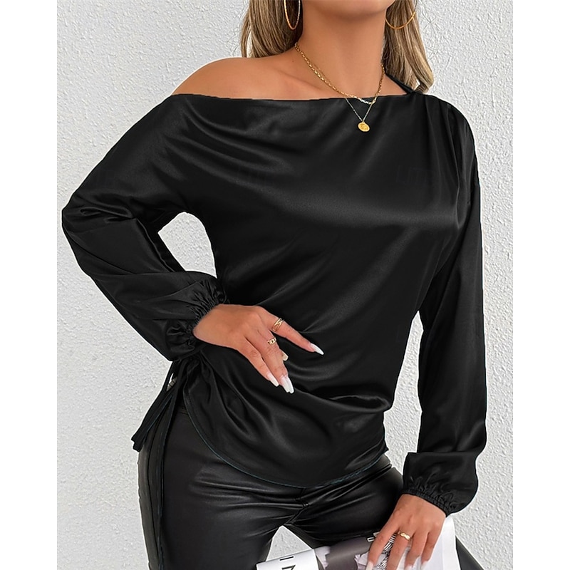 This Women's Shirt Elegant Dressy Satin Plain chic Casual Long Sleeve Cold Shoulder Regular Tops Daily Going out Asymmetric Black Green Spring Fall combines elegant design with practical functionality. Every detail has been carefully considered to ensure you get the best possible experience. The top-grade construction means this product will serve you well for years to come.