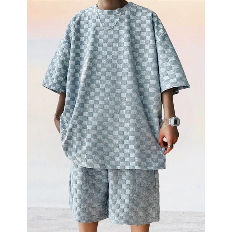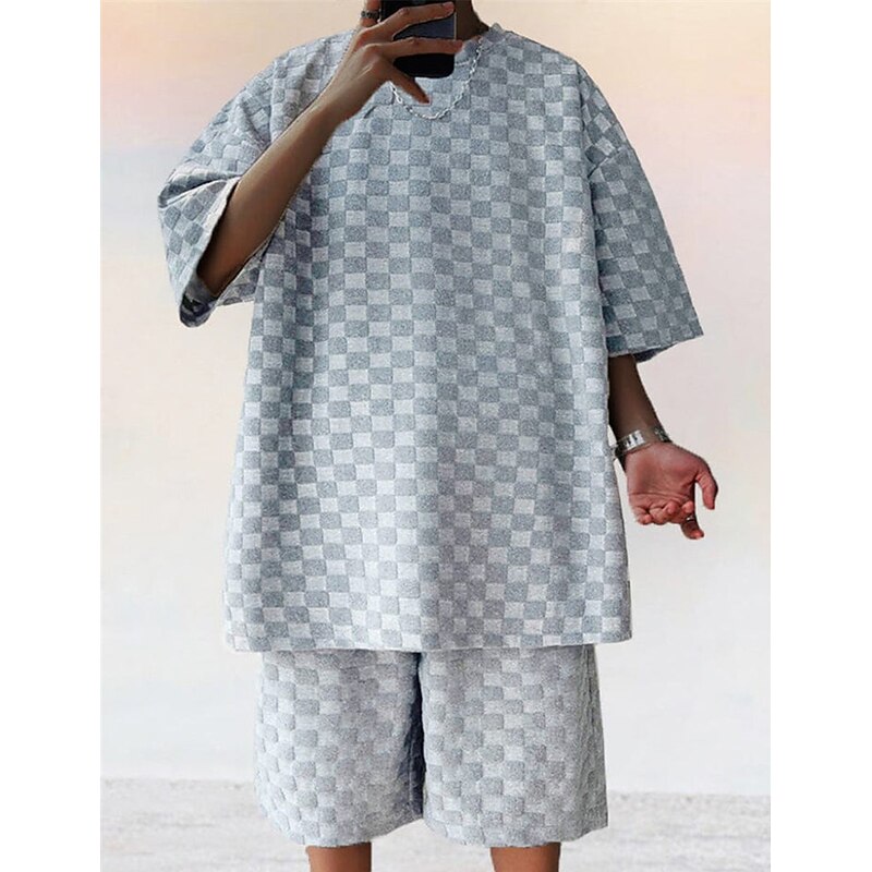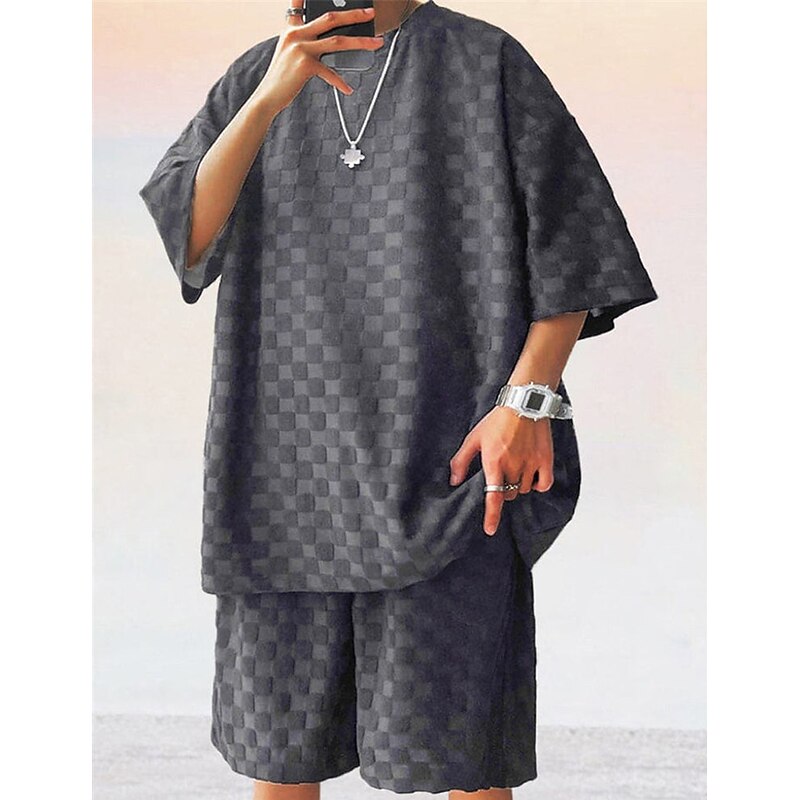 Men's T-shirt Suits Tracksuit Tennis Shirt Shorts and T Shirt Set Short Sleeves Crew Neck Summer Plaid Plain Gymnatics Casual 2 Piece Vacation Daily Wear Activewear Black White Gray Top Tee for Men
