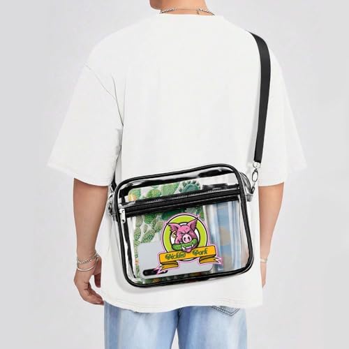 sought-after ! Wild Hog Biting Pickle Large Crossbody Bag Clear Stadium Bag Anti-Theft Side Shoulder Bags Messenger Bag with 2 Compartments