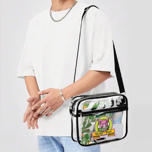Wild Hog Biting Pickle Large Crossbody Bag Clear Stadium Bag Anti-Theft Side Shoulder Bags Messenger Bag with 2 Compartments