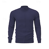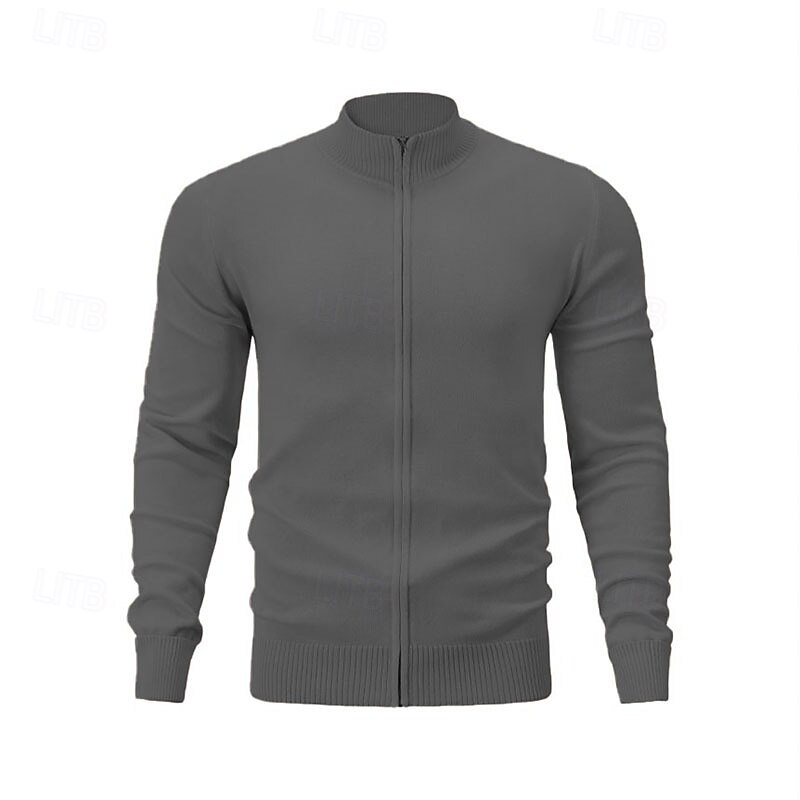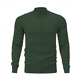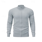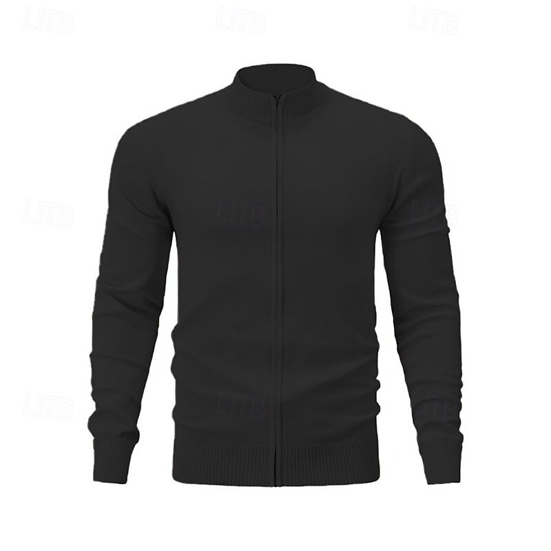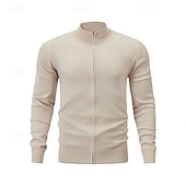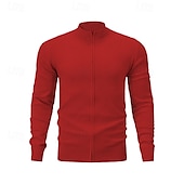 More information about Men's Cardigan Sweater Zip Sweater Knit Sweater Ribbed Knit Regular Zipper Solid Color Stand Collar Fashion traditional Daily Wear Date Clothing Apparel Spring Fall & Winter Black Red M L XL