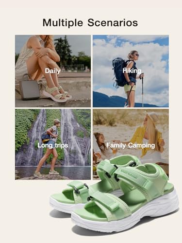 Sole material: RubberOuter material: RubberClosure type: Hook & Loop【Anti-slip Properties】 MD non-slip outsole provides women‘s hiking sandals excellent traction, ensuring stability and safety during outdoor activities and sports.【Quick-dry Upper】Walking sandal make of quick-drying rubber material helps with efficient drainage and drying, keeping your feet fresh and soft.【Adjustable Sport Shoes】3 adjustable straps allow you to freely adjust the tightness of the shoes according to your foot shape and preference.【Arch Support】Thick sole design provides extra cushioning and support, reducing pressure on your feet during walking and hiking.【Occasion】The water sandals are perfect for hiking, outdoor activities, and beach trips, making them an ideal choice for women's various leisure activities. Perfect for everyday use. supreme materials and excellent craftsmanship ensure long-lasting durability.
