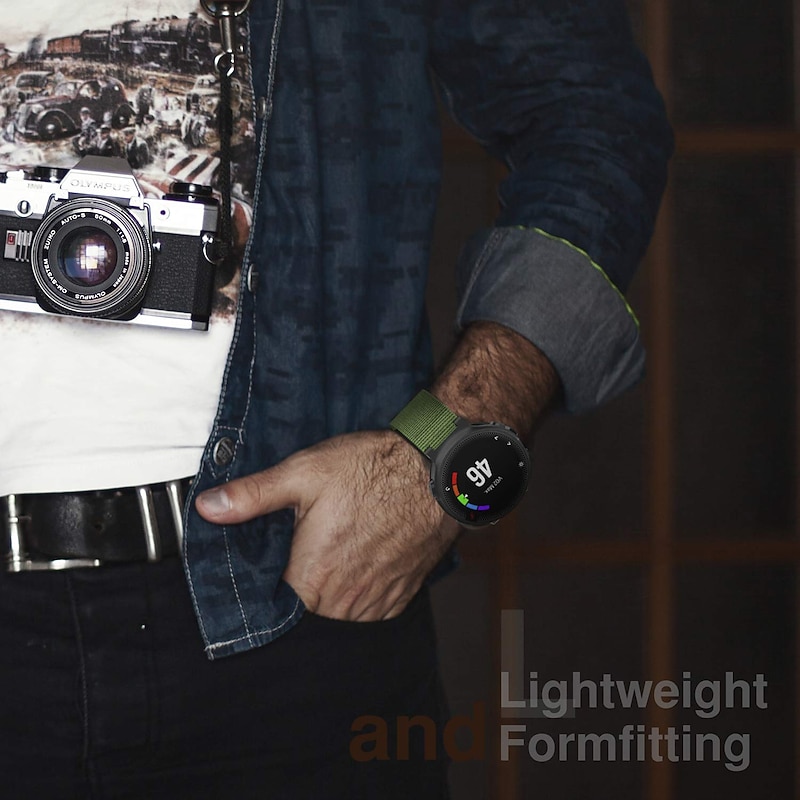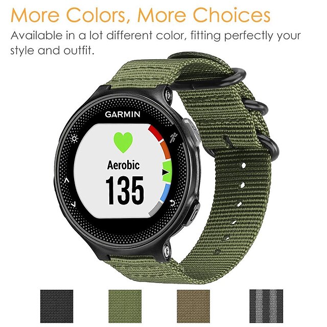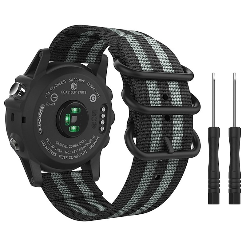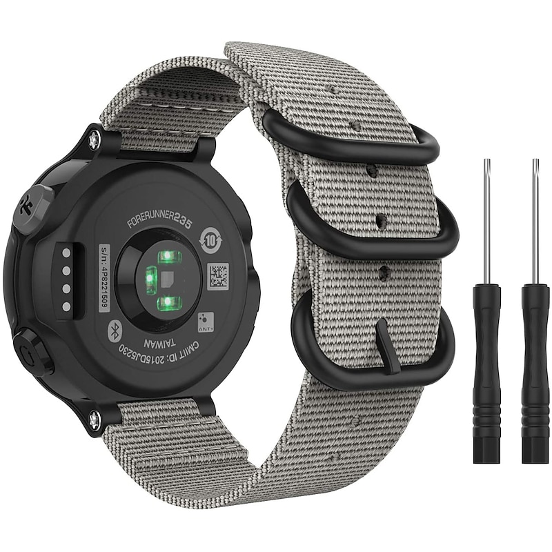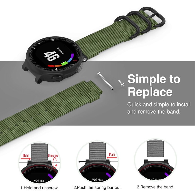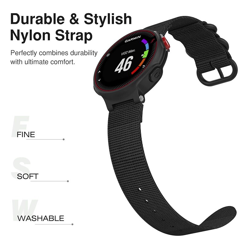 Highlights 1. Personalize your Garmin Forerunner smart watch with this refined replacement wrist band compatible with several models. 2. Easy and direct installation and removal onto watch lugs to ensure a secure fit. 3. An innovative pin-and-tuck closure system ensures a clean, precise fit. 4. Made with premium nylon material with moderate softness and fine craftwork, making it comfortable and durable. 5. Hypoallergenic nickel-free stainless steel used for metal parts. 6. Fits a wide range of wrist sizes from 5.51-7.87 (140mm-200mm). 7. Comes with 2 screwdrivers for easy DIY installation. 8. (Note: Watch NOT included.)