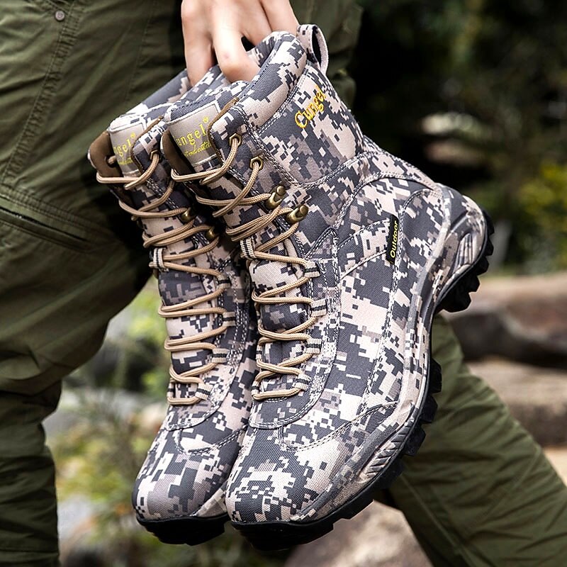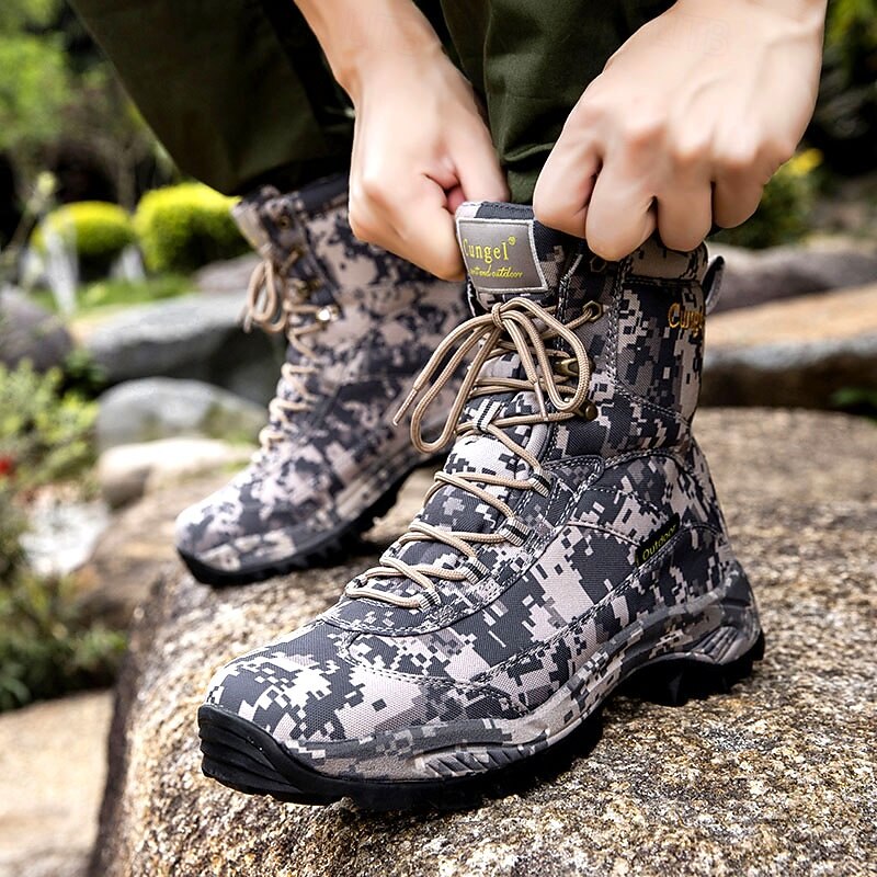 Men's Camouflage Outdoor Hiking Boots – Waterproof, resilient, and Lightweight with Non-Slip Sole for Hunting and Trekking