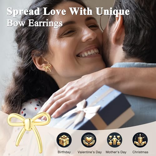 Hypoallergenic Gold Bow Earrings for Women, 14K Gold Plated Stud Earring for Women Trendy, Dainty Non Tarnish Ribbon Bow Earrings for Women Jewelry Gifts