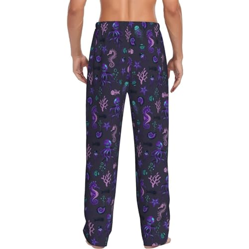 More information about Pajama Pants Men - Octopus Seahorse Jellyfish Purple Men's Pajama Bottoms, Mens Cotton Pajama Pants